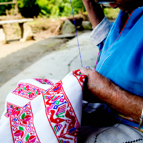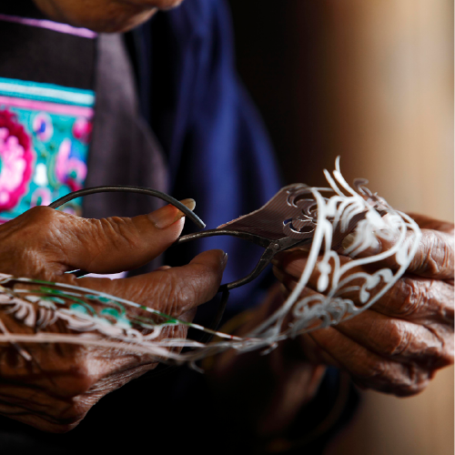 我们在夏令营的基础上成立了花瑶挑花工作室,对挑花进行艺术再创作,让花瑶以外的人也可以感受到挑花带来的视觉盛宴。